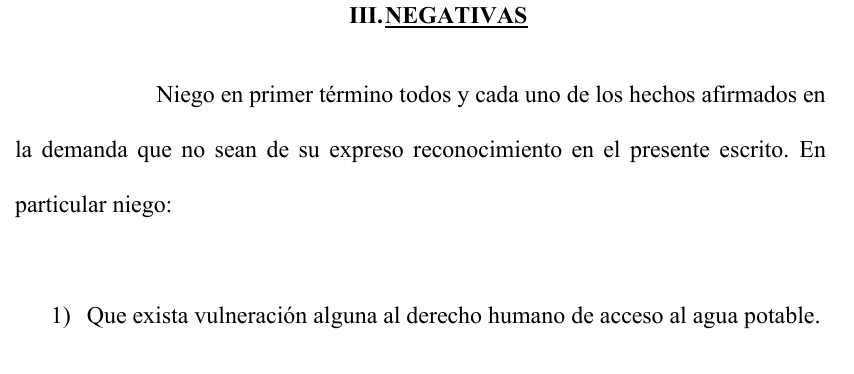 Por suerte la jueza que tomó el amparo piensa distinto, es decir, piensa con la ley en la mano y ordenó a la empresa a reconectar el servicio, además de realizarle varios pedidos que tanto SAMSA y el EPRAC no contestaron, o bien lo hicieron fuera de los términos legales. SAMSA negó rotundamente todo: no están vulnerando ningún derecho, no le están cortando el agua a personas en situación de vulnerabilidad, no hay consumos apócrifos, no hay niños entre los integrantes de las viviendas en situación de corte, que haya una falla técnica responsabilidad de SAMSA, entre otras. Esto es una estrategia básica del derecho: negar todo para después sentarse a hilar fino. Para la empresa y para el EPRAC, todo funciona bien, se cobra bien, no hay aire, está bien dejar sin agua a una persona, no hay problema con cortarle el agua a un jubilado, a una persona con discapacidad o a una familia con hijos. Total normalidad, ya que, como bien informa el EPRAC, en Misiones las leyes nacionales y tratados internacionales no aplican.