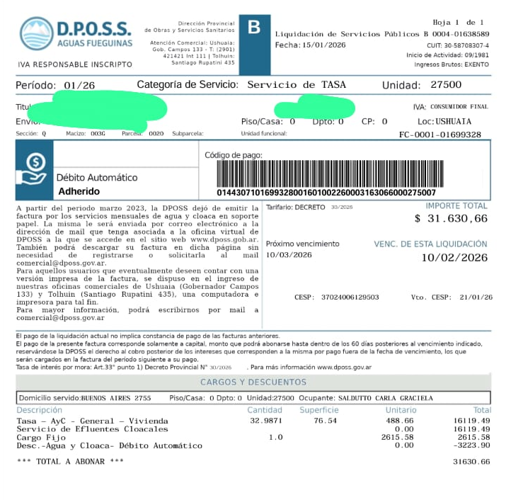 Factua de agua y cloacas de Ushuaia. ¿Cómo puede ser que el agua allí sea más barata que en Posadas?