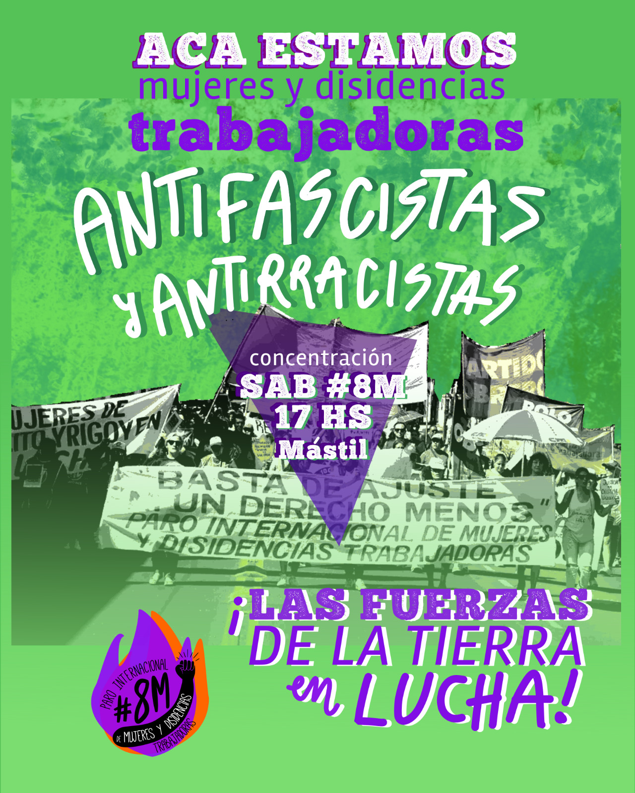 Bajo la consigna "Acá estamos mujeres y disidencias trabajadoras, antifascistas y antirracistas, las fuerzas de la tierra en lucha", convocan en Posadas a la movilización por el 8M. La concentración será a las 17 hs del sábado en el Mástil de Av. Uruguay y Av. Mitre.