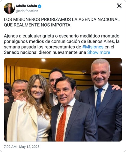 En esa clave, el ministro de Economía misionero, Adolfo Safrán, defendió la votación de los senadores como “silenciosa” pero decisiva para dar “gobernabilidad al proyecto de Milei”. En sus redes sociales enmarcó la decisión como “visión estratégica” de Rovira y la calificó de “intervención quirúrgica” contra “una ley hecha a medida del macrismo”. El oficialismo provincial incluso celebró la movida: un comunicado partidario la describió como “una jugada política orquestada con precisión quirúrgica por Carlos Rovira” que “cambió el tablero entero”. En resumen, la versión oficial del gobierno provincial y sus voceros digitales siguió la misma línea dictada desde la Casa Rosada, tanto por los funcionarios de primera línea como por su ejército de trolls, pero disfrazada de master class, cuando a vistas de todos se trató lisa y llanamente de replicar el mensaje enviado desde la capital nacional.