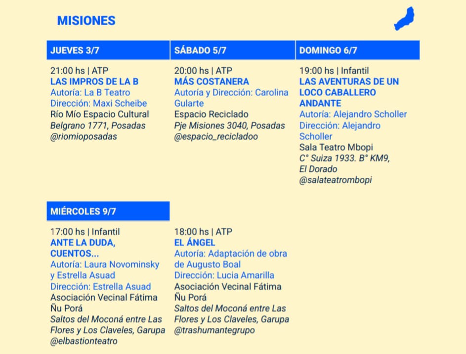 En Misiones, Posadas, Eldorado y Garupá habrá funciones a la gorra en el marco de este festival, que comenzó el jueves 3 y se extiende hasta el 9 de julio. Buscá la programación, seguí a las salas en las redes, reservá tu lugar y defendé la cultura con presencia incluso aunque no tengas dinero para aportar a la gorra.