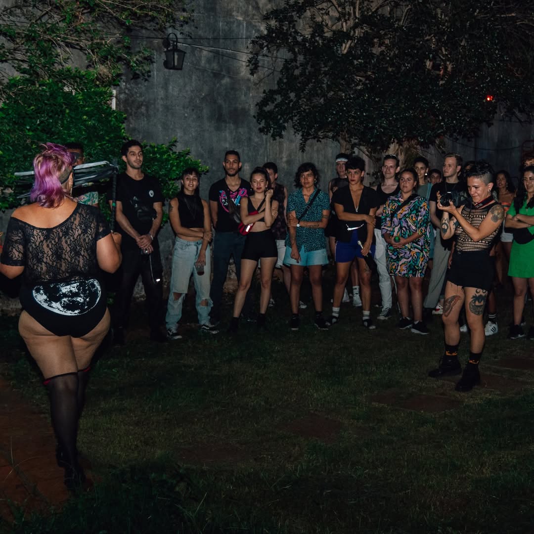 Uno de los sellos de Experiencia Performática es que todo sucede al mismo tiempo. Varias performances en paralelo, en espacios distintos. Como espectadorx, nunca podés ver todo. "Esto genera intriga, curiosidad, y sobre todo conversación: la mayoría pasa la noche preguntando qué pasó en aquella que no vio", explican. Ese carácter fragmentado, esa imposibilidad de abarcarlo todo, es también una metáfora de la vida: lo real, lo deseante, siempre se escapa.